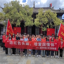 - 2023年6月8日,云南经济管理学院高职学院大学生服务团在洪张龙老师的带领下,赴安宁市革命历史教育展览馆开展了主题为“游红色长廊,增爱国情怀”的活动,通过党建带团建,团建带学建,深切缅怀革命先烈,传承红色基因,激励学生干部和学生团员继承先烈遗志、汲取奋进力量。进一步教育引导团员提高党性修养、增强党员意识、强化党性观念。追寻红色记忆,传承红色精神活动中,讲解员徐文泉老师向同学们介绍了安宁第一个党组织的建立,安宁的第一次农民运动的开展,龙宝寺联络站的建立、安宁党支部的重建、武装斗争的开展、赖乌包山战