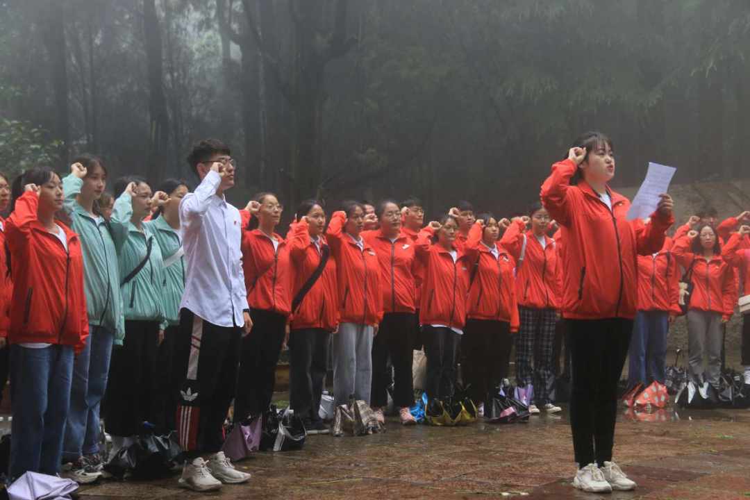 最后,由校团委组织部副部长谭博文带领在场全体团员青年重温入团誓词,每位学员都庄严肃穆的握拳进行宣誓。