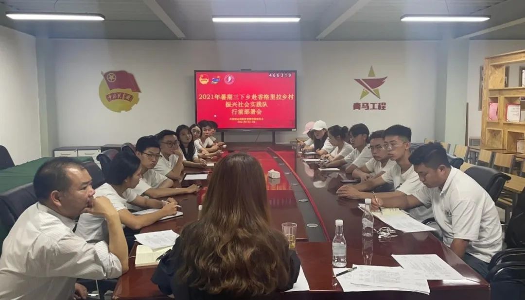 云南经济管理学院2021年暑期三下乡“民族同心 ‘奔’赴振兴”实践队于2021年7月13日下午在青年之家会议室开展行前部署会,参会人员有云南经济管理学院团委副书记李杨老师、团委老师刘恋、马克思主义学院老师唐贵宏、高职学院老师原杨以及实践团成员。
