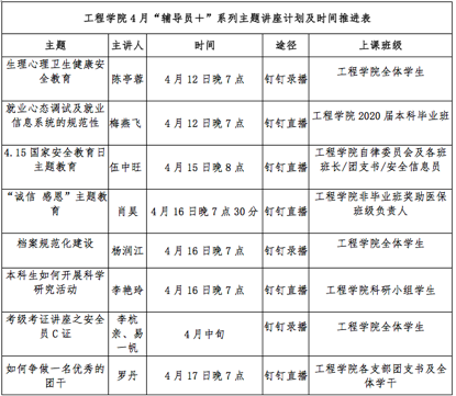 为继续相应“在家停课不停学”的号召,工程学院全体辅导员在紧锣密鼓的准备为大家制定一个线上主题的系列讲座,内容丰富多样,其目的是为了借此时机为全体工程学院学子开展相关主题教育,大学生思想引领教育等,也为了能通过本次讲座主要内容为同学们提供更完善的信息获取以及与各位同学之间建立起一个良好的沟通桥梁。最重要的来喽!宅家模式开启的同时,大家会不会担心第二课堂的积分修不够,不要有顾虑,我们懂你,只要你来,我们就“认定你”,特此奉上不一样的活动方式——线上讲座!