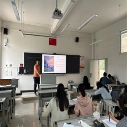- 2025年6月10日下午,高职学院小学教育系基础教研室二教319开展公开课教研活动。系主任王荣文、副系主任孙慧姝、基础教研室主任王欢、专业教研室主任普晓晓、体育教研室主任李伟及全系所有专职教师参与活动。本次公开课由基础教研室专职教师靳晧老师带来《儿童画技法》课程的讲授。(靳老师进行公开课讲解)靳老师先展示图片,引导提问:“出示图片,从以下三个方面思考:➀构图;➁色彩;➂技术”,通过案例展示引导出儿童画在案例中的典型元素,包括➀构图:竖向构图;➁色彩:蓝紫色;➂技术:以油画棒为原料,体现平涂、厚涂