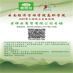 为深入学习贯彻党的二十大精神,落实就业优先战略,促进毕业生更高质量、更充分就业,也为深入贯彻党中央、国务院和省委、省政府、省教育厅关于做好高校毕业生就业工作的决策部署,2023年2月28日上午11点,高职学院联合老祥云商贸有限公司,通过钉钉直播的方式举行高职学院春季学期第三场线上网络招聘会,千方百计促进毕业生多渠道就业。       老祥云商贸有限公司在1998年开始创业起步,于2017年12月12日成