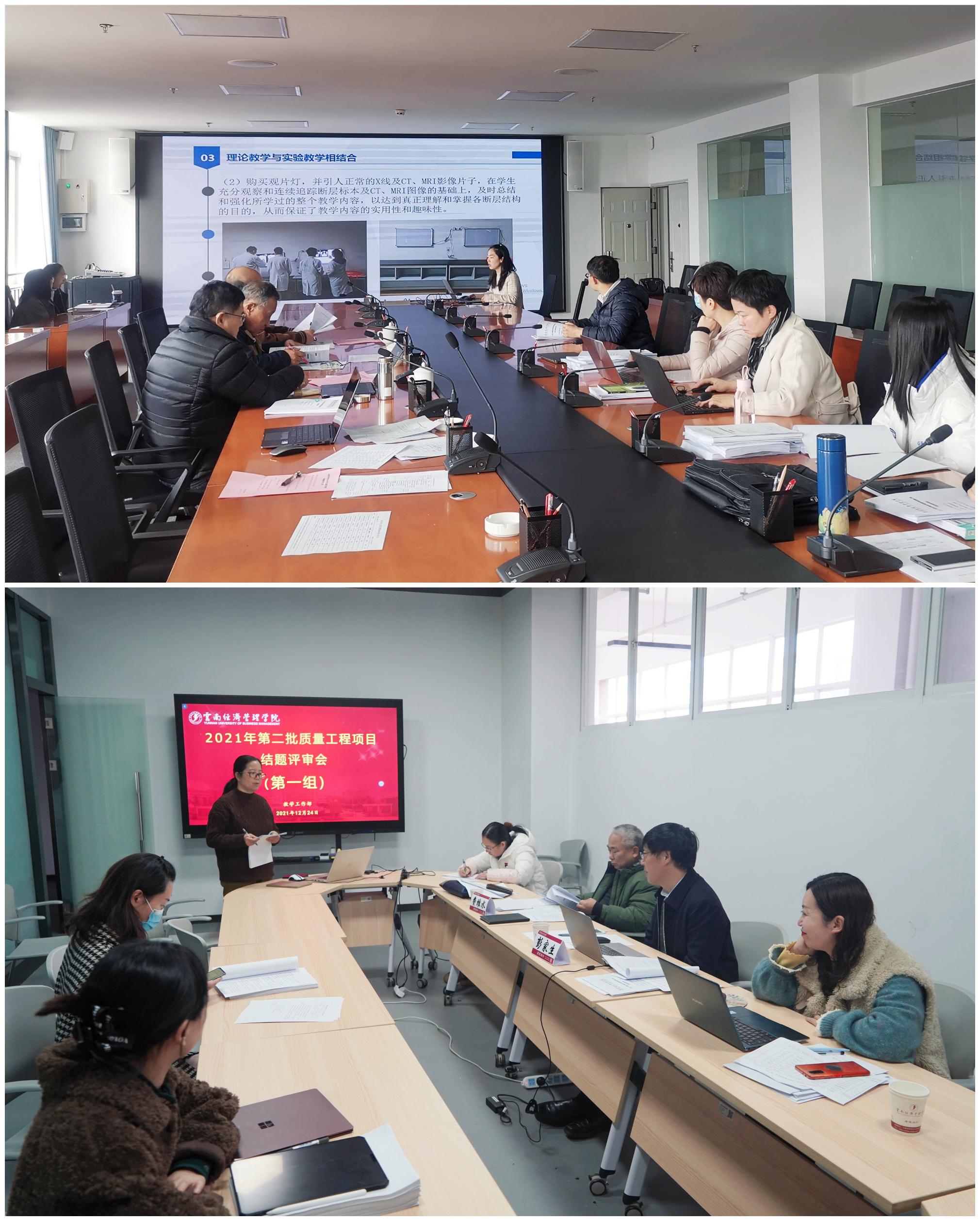 为检验我校教育教学改革、课程建设等项目的建设实效,着力提升专业建设成效和人才培养质量,教学工作部于2021年12月24日下午,组织召开了2021年第二批质量工程项目验收评审会。项目分三组进行评审,由史庆南副校长、宋爱苹校长助理等学校教学指导委员会委员担任评委。课程改革项目、教育教学改革项目、云教材等三个类型共33个项目参与验收。