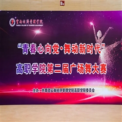 - 为深入学习宣传贯彻党的二十大精神,学深悟透习近平总书记重要讲话精神,坚持以习近平新时代中国特色社会主义思想为指导,立足高职学院“树职教典范,育大国工匠”的院训,丰富我院校园文化生活、提升我院师生的运动和健康氛围、增强广大师生的归属感和团支部凝聚力,由共青团云南经济管理学院高职学院委员会主办的“青春心向党 舞动新时代”——高职学院第二届广场舞大赛于2023年5月9日在体育馆举行。荣获本次大赛一等奖的是:荣获本次大赛三等奖的是:高职学院党总支副书记彭轶、校团委副书记孙启明、校团委社团部部长杨承霖、高
