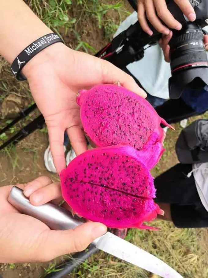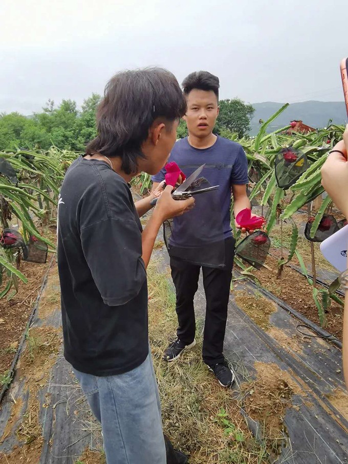 下午小分队来到巧家汇田农业开发公司红心火龙果种植基地,进行红心火龙果直播带货。