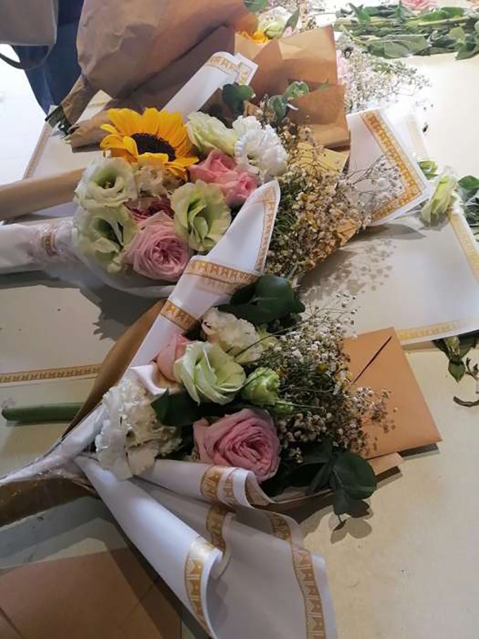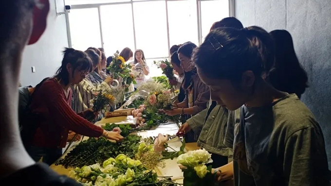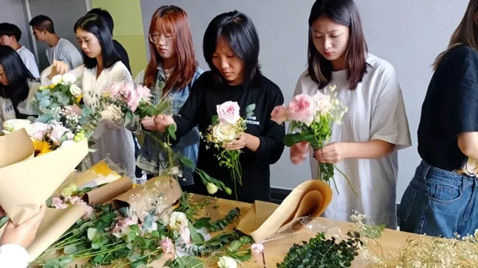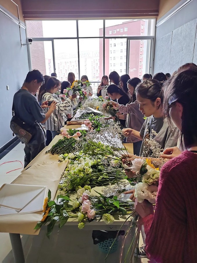没错!就在今年的教师节,这个意义重大的日子里,艺术与传媒学院的小同学们在二教五楼举行了插花活动,纷纷为各位老师送上自己亲手制作的花束,同时还以班级为单位向老师录制祝福语,书写贺卡以表老师对同学们悉心教导的感激之情,。
