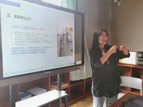 如何上好实践课程,罗老师以《设计概论》为例,以新奇的名片设计引入设计的创意与思维,以《材料与预算》为例,调动积极性让学生掌握发现问题、解决问题的能力, 以《计算机辅助设计AutoCAD》为例,讲解了在软件实践课程中注重讲演结合,鼓励学生自己去探索,提倡学生独立思考,在应用中遇到解决不了的问题与老师探讨。