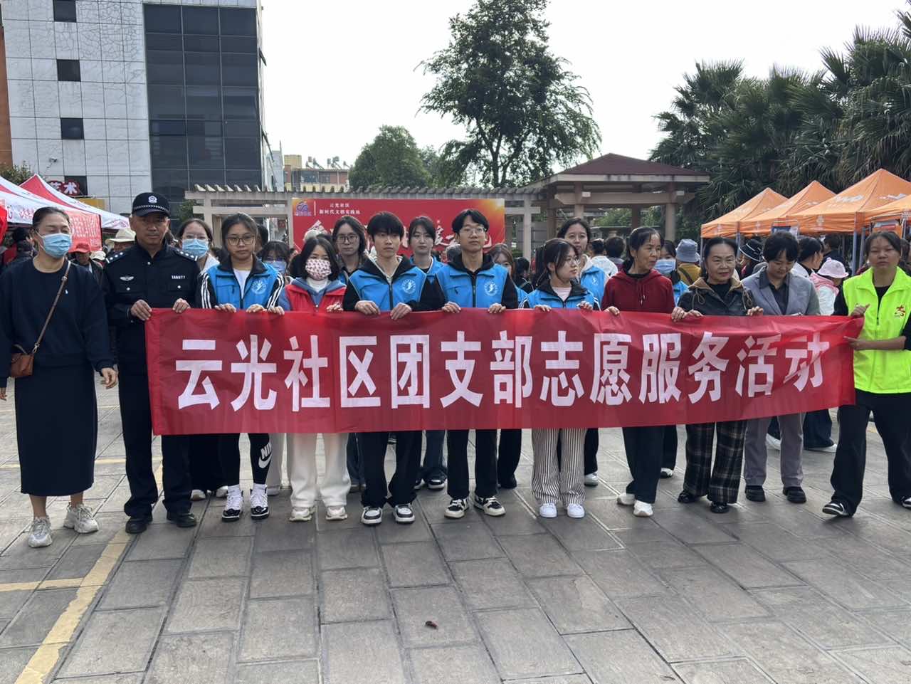 下午2时许,医学院志愿者团队抵达海口街道活动现场