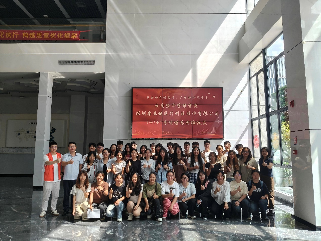 - 为响应国家关于深化产教融合、校企合作的号召,培养更符合行业需求的高素质口腔医学技术人才,2025年9月2日,云南经济管理学院与国内知名龙头义齿加工企业深圳康泰健医疗科技股份有限公司第一届校企合作“2+2”订单班开班仪式在深圳康泰健公司隆重举行。云南经济管理学院医学院口腔实训中心主任张俊杰、深圳康泰健医疗科技股份有限公司管理中心总监肖珠链、培训部负责人石胜辉和口腔医学技术专业第一届订单班39名本科生出席活动,共同见证“产教融合新实践、精准育才”的重要时刻。