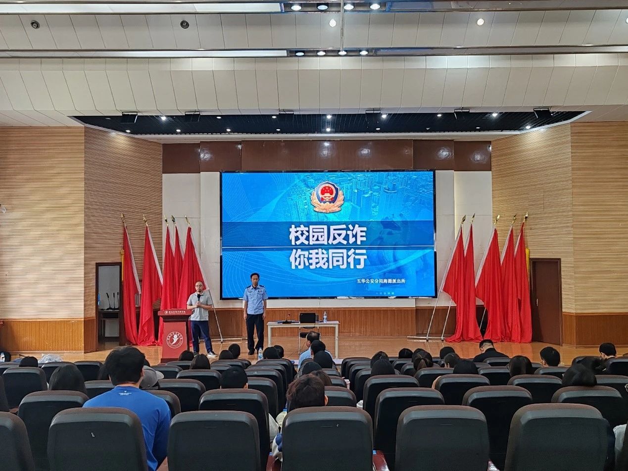 - 为提升师生防诈意识,5月20日,云南经济管理学院邀请海源派出所所长、医学院法治副院长熊涛,开展防电信网络诈骗专题讲座。保卫处刘祖红副处长、朱恩朝科长,医学院党总支副书记王超老师、学生科副科长唐楷雄老师、全体辅导员及学生代表参会。王超老师主持讲座,他指出,当前电信网络诈骗案件仍有发生,反映出我国当前的防诈工作任重道远。他希望老师们牵头将防诈工作落细、落实、深入,同学们积极配合,共同为建设平安校园、保护师生财产安全而努力。随后,海源派出所熊涛所长带来了精彩分享。熊涛所长指出,2024年辖区内高校学生