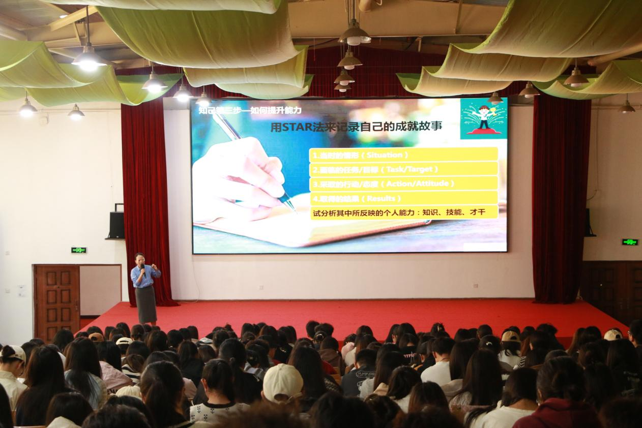 - 为了加强我院学生生涯教育和就业指导,增强大学生生涯规划意识,根据《云南经济管理学院关于举办首届职业规划大赛的通知》相关安排和要求,在学校就业创业工作部的指导下,云南经济管理学院医学院于2023年11月4日在海源校区实验楼501报告厅邀请到云南中医药大学杜丽理老师开展《如何撰写职业生涯规划书》专题培训讲座。本次讲座由医学院党总支书记彭轶主持,学生科长宋超、杨娟霞、就业专员、全体辅导员及600名无课学生参与了本次培训。杜丽理老师为大家详细解析撰写职业生涯规划书的步骤和要点,引导大家了解自我,探索职业