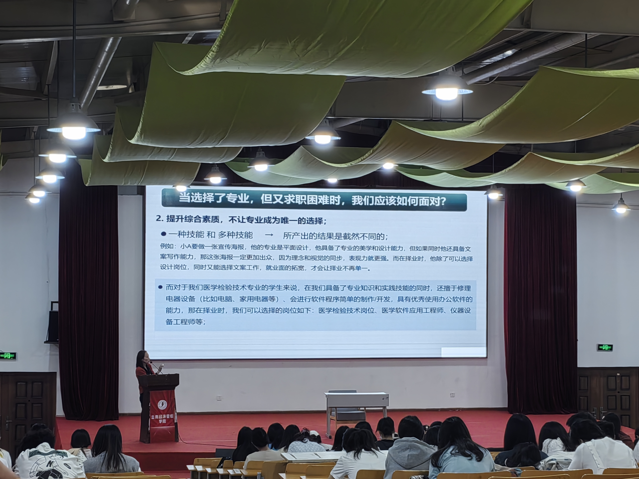 会议伊始,医学检验系董慧珠老师,首先通过2024年第二季度的就业形势报告展示,向同学们深入剖析了当前毕业生的就业形势,结合医学检验技术专业的特点,为学生们描绘了一幅清晰的职业蓝图。她强调,学院始终将学生就业工作放在首位,致力于为学生们提供最优质的就业指导和支持。