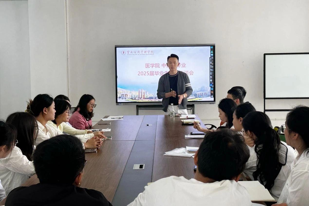 2025年5月10日,云南经济管理学院医学院中药学专业在图书馆311会议室召开2025届毕业生代表座谈会。教研室主任赵禹、教师代表普娟、周礼彬、吴白芬、周倩、张樱瀚及20余名毕业生代表齐聚一堂,围绕教学改进、实习体验及未来发展展开真诚对话,倾听学生心声,共话专业发展。